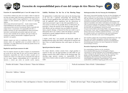 Solo se permite disparar si no se ha consumido alcohol ni drogas y se cumplen las normas y medidas de seguridad del club y de los instructores. Firma del acuerdo de exención de responsabilidad.