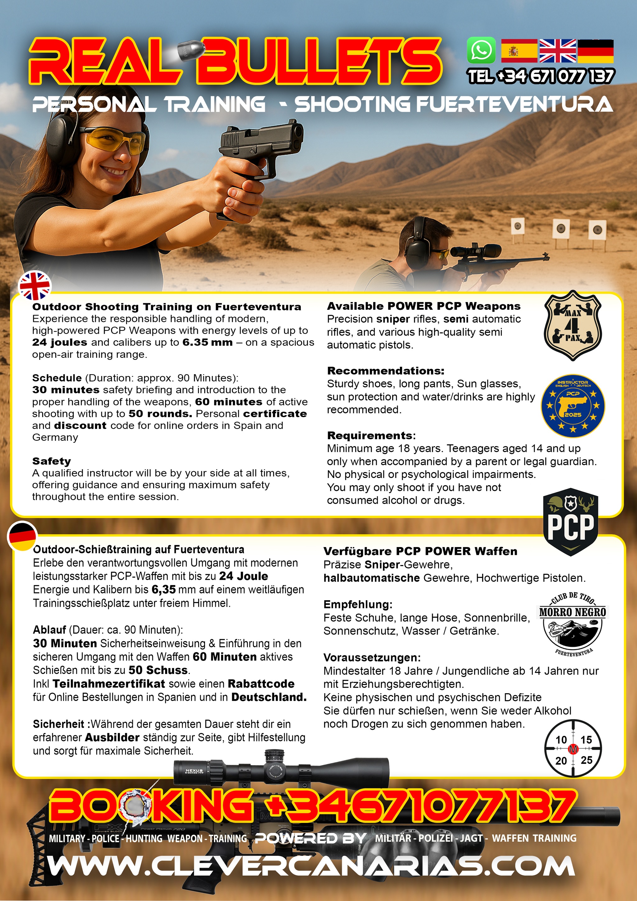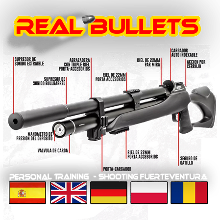 Con modernas y potentes armas PCP (hasta 24 julios de energía, calibre hasta 6,35 mm), aprenderás a manejar esta